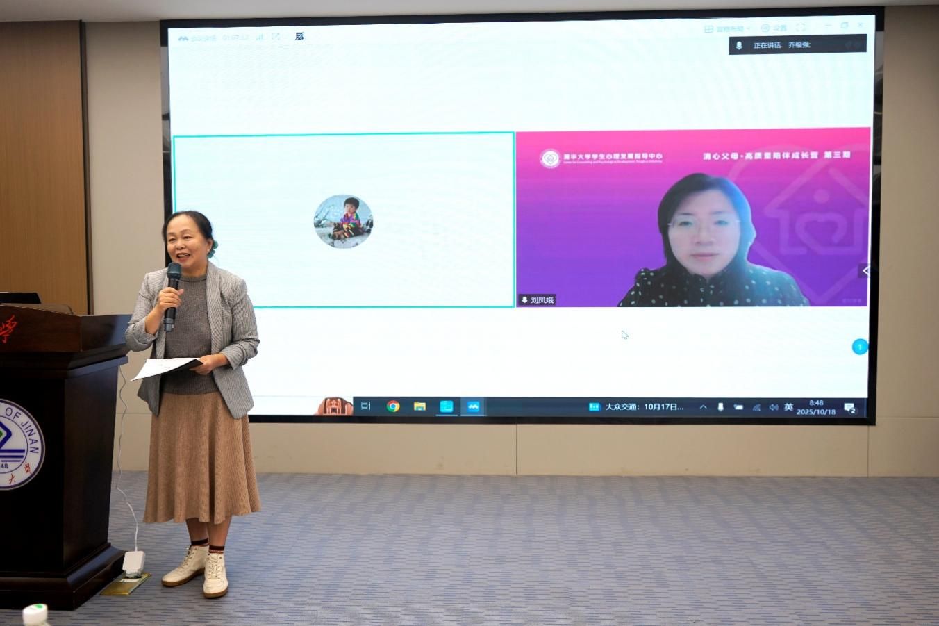 朱波为活动致欢迎词,肯定了论坛在推动青少年心理健康教育领域的积极意义。陈功香理事长围绕济南心理学会2025年度工作开展情况进行总结,并对2026年度工作计划作出部署。论坛以“挑战与成长:当代青少年心理问题的新特征和新对策”为核心主题,特邀多位行业专家带来高水平学术报告。清华大学刘凤娥教授、齐鲁医院杨乐金主任、济南幼儿师专逄霞教授、济南电视台节目主持人李冠洋、济南市公司产品研究院教研员石建军、历下区教研员马莉等嘉宾,分别聚焦家庭系统与个体心理健康疗愈路径、青少年常见情绪障碍诊断与处理、系统式家庭治疗对家庭教育的启示、厌拒学“四视角模型”的精准干预应用等关键议题,分享前沿理念与实践经验。