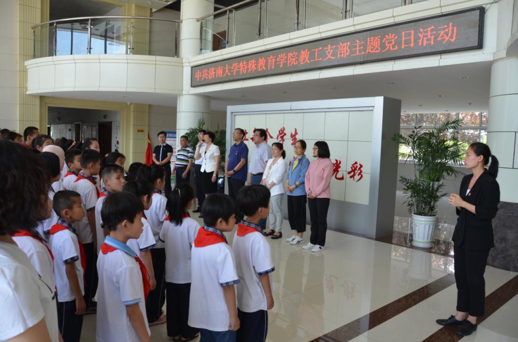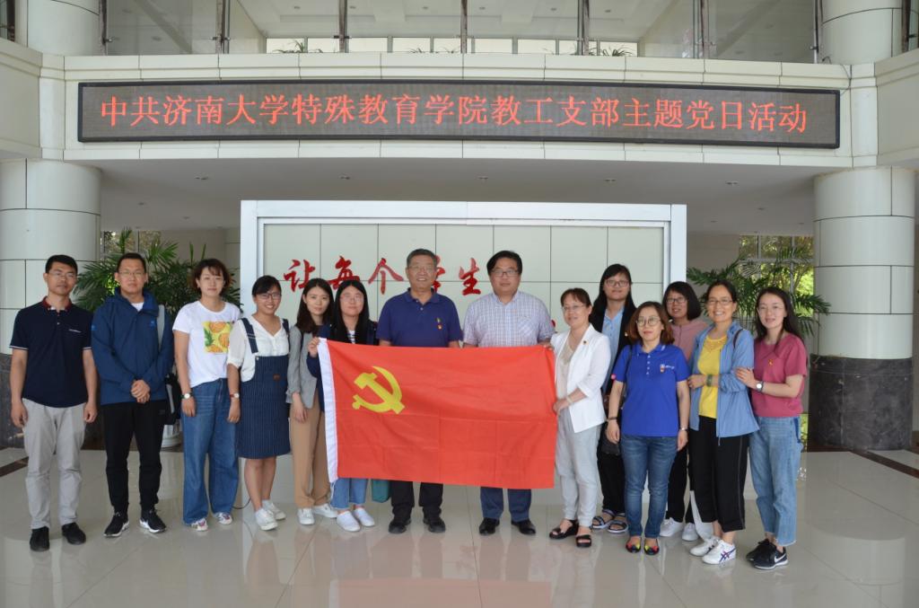 2019年6月6日,三亿体育官网教育与心理科公司教育系教工党支部前往济宁市特殊教育公司,举行了以“弘扬高尚师德,潜心立德树人”为主题的主题党日活动。三亿体育官网教育与心理科公司党委书记王希普,党委副书记、副经理季竹君及教育系教工党支部全体党员参加了此次活动。