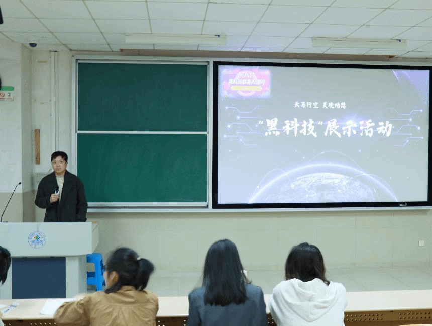宣讲会上,王基正详细讲解了本次黑科技展示活动有关参赛对象要求、参赛报送流程、作品格式和提交方式等问题。他提出,“黑科技”是种子、是火花、是探索未知的无惧、是打破传统的勇气,科技作品应对标前沿领域,具有高精尖色彩,具备颠覆性与超越性的创新技术,也可以是具有创新性与应用性的实物或技术。同时,他提醒大家注意参赛作品必须要具有完全知识产权且并未同时参加本届“挑战杯”竞赛主体赛事与往届比赛,作品为实物或者技术,可以通过视频或者图文形式体现出来等。最后,在答疑环节,王基正耐心具体地对同学们的疑问进行了解答,并鼓励同学们积极报名参与科创比赛。