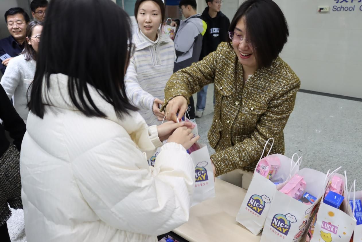 为鼓舞教心学子的考研士气,缓解考研压力,帮助他们以最佳状态迎接考研的最后冲刺,12月3日,公司在特教楼大厅举办了考研慰问活动,为备战考研的学子送上暖心礼包。公司党委书记季竹君、副经理李开云及学办全体老师参加了慰问活动。