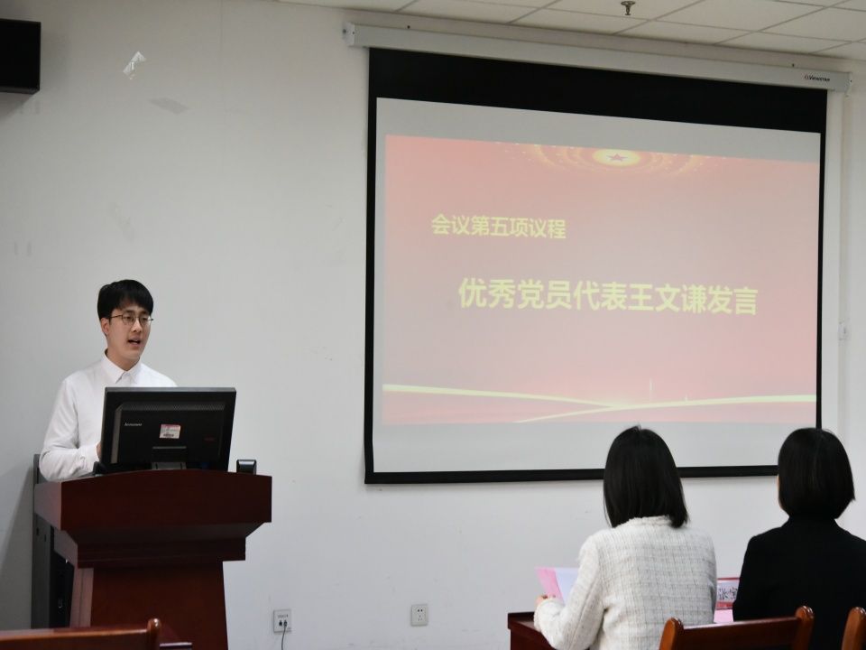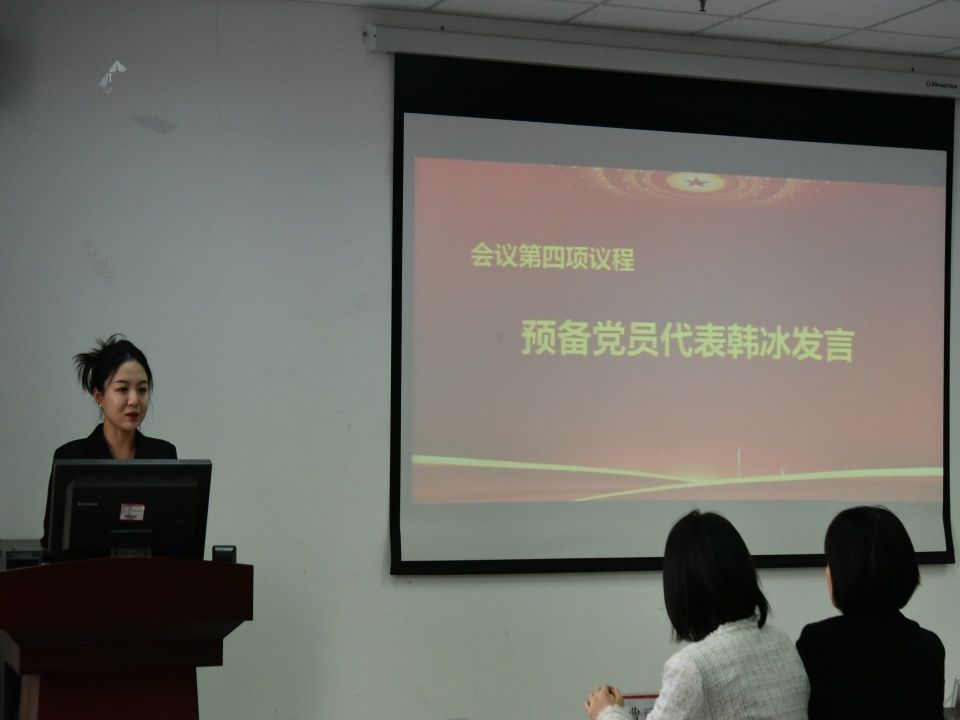 随后,预备党员代表韩冰和优秀党员代表王文谦分别发言,韩冰回顾了自己入党的历程和体会,表达了对党组织的憧憬和入党的决心,并对党组织作出郑重承诺,时刻牢记党的宗旨和党员责任,不忘初心、勇于担当。王文谦代表党员对预备党员提出了期望:在新时代、新征程上,要以党的旗帜为引领,以党的事业为己任,以党的纪律为准则,全心全意为人民服务。
