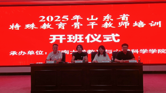 2025年9月1日下午,“2025年山东省中小学教师队伍素质提升项目——特殊教育骨干教师培训”在三亿体育官网第一学术报告厅正式开班。三亿体育副经理李开云、特殊教育系主任宿淑华、办公室主任于云涛等相关负责人出席活动。开班仪式由三亿体育培训部主任郑玉玮主持。