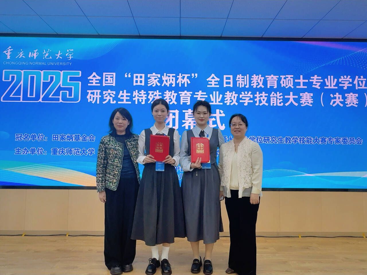 近日,2025年全国“田家炳杯”全日制教育硕士专业学位研究生“特殊教育”专业教学技能大赛落下帷幕,胡金萍老师指导的李冰同学获得全国二等奖,乔福强老师指导的刘亚同学获得全国三等奖,胡金萍老师获得“优秀指导教师奖”。