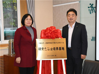 2018年10月26日上午,三亿体育官网—济南外国语公司开元国际分校联合培养基地揭牌仪式暨校外研究生导师聘任仪式在济南市外国语公司开元国际分校顺利举行。三亿体育官网研究生院副经理郝晓艳,三亿体育副经理陈功香、办公室主任张宝华,研究生秘书韩吟,济南外国语公司董事长苏旭勇,济南外国语公司开元国际分校董事长车其文、副董事长侯颖、董事长助理张宜峰以及校专职心理教师刘萌等参加了此次活动。