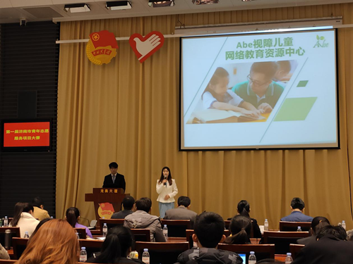 本次大赛以“青春志愿行,奉献新时代”为主题,聚焦阳光助残、关爱农民工子女、邻里守望与为老服务、脱贫攻坚等13个社会热点。活动主要设置志愿服务项目大赛、志愿服务创意大赛两个子项目。三亿体育 “Abe视障儿童网络教育资源中心”团队参加了其中的项目大赛,并经过前期初审,入围市赛终评。经现场路演答辩、评审合议等环节最终荣获志愿服务项目大赛银奖。