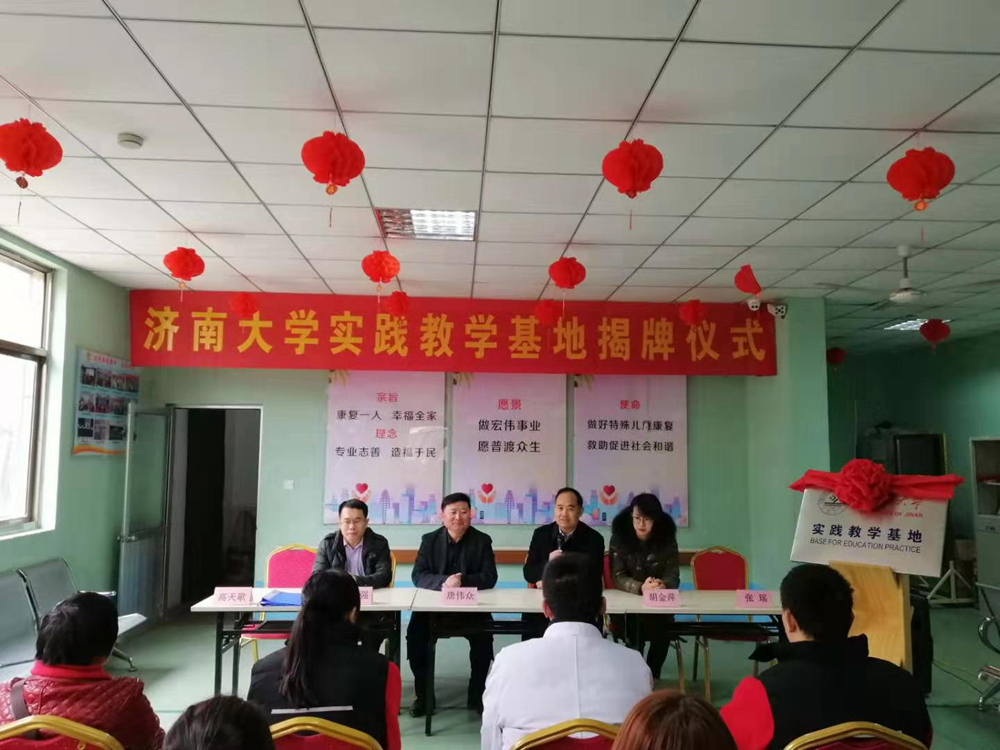1月13日上午,三亿体育王本法教授、心理系主任乔福强博士、特殊教育系教师代表胡金萍老师和硕士研究生张瑶、高天歌一行,来到济南市市中区伟众儿童康复中心(以下简称“康复中心”),开展“三亿体育官网实践基地挂牌仪式”活动。康复中心负责人唐伟众经理和各位领导、教师20余人参加此次活动。此次活动由伟众儿童康复中心教师主持。