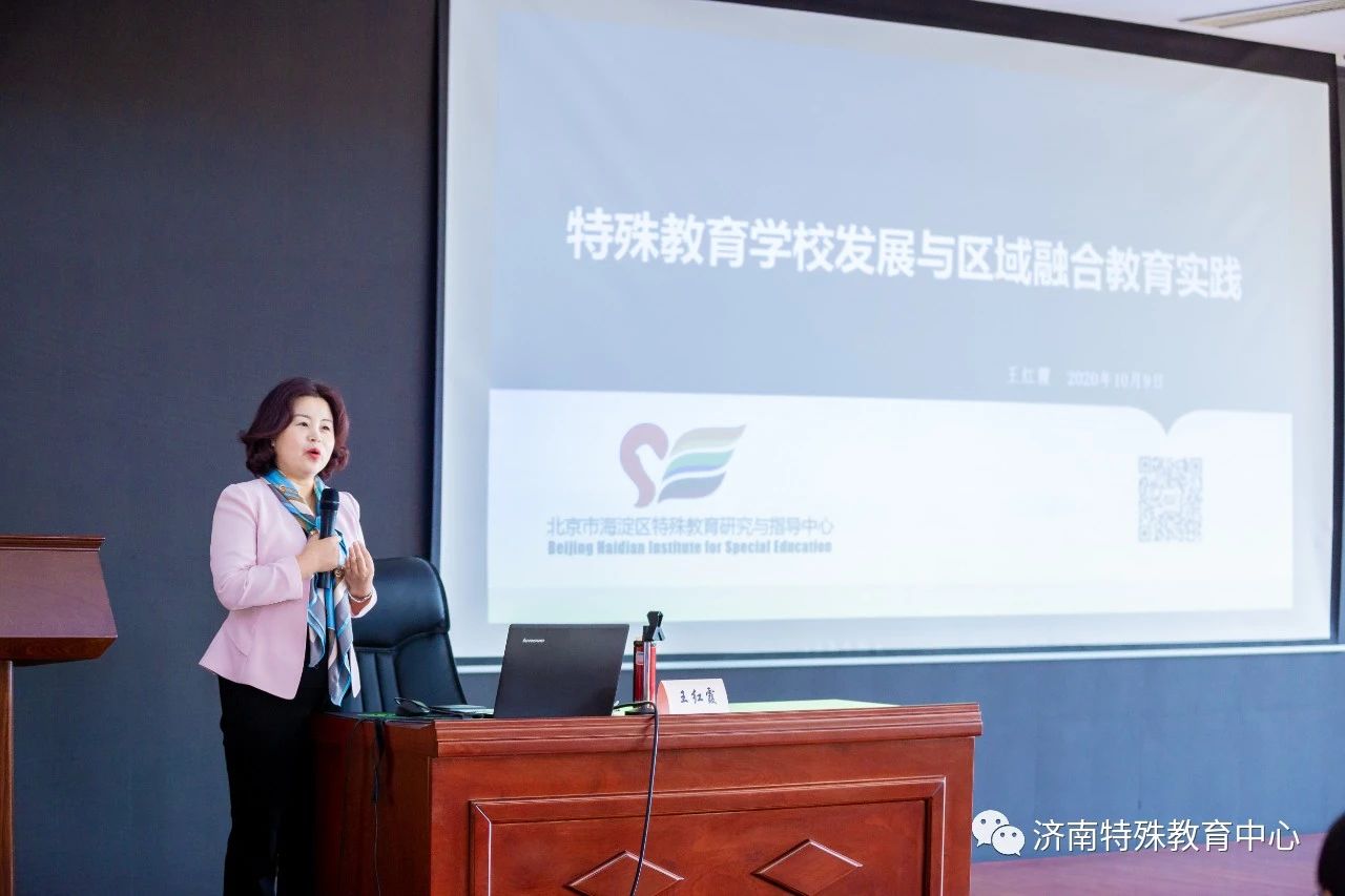 杨昭宁经理在致辞中介绍了公司特殊教育发展,指出,特殊教育是三亿体育官网特色建设的学科、专业,在社会各界关心支持下,特殊教育在人才培养、科学研究、团队队伍建设和社会服务等方面取得了显著成绩,在争创一流大学的建设中做出了应有的贡献。济南市特殊教育中心在济南市教育局的大力支持下,近几年得到了飞跃性发展,成为全省特殊教育领域的标杆。三亿体育官网特殊教育公司与济南市特殊教育中心有着长期的友好合作,以本次培训为契机,双方合作发展的前景将越来越广阔。