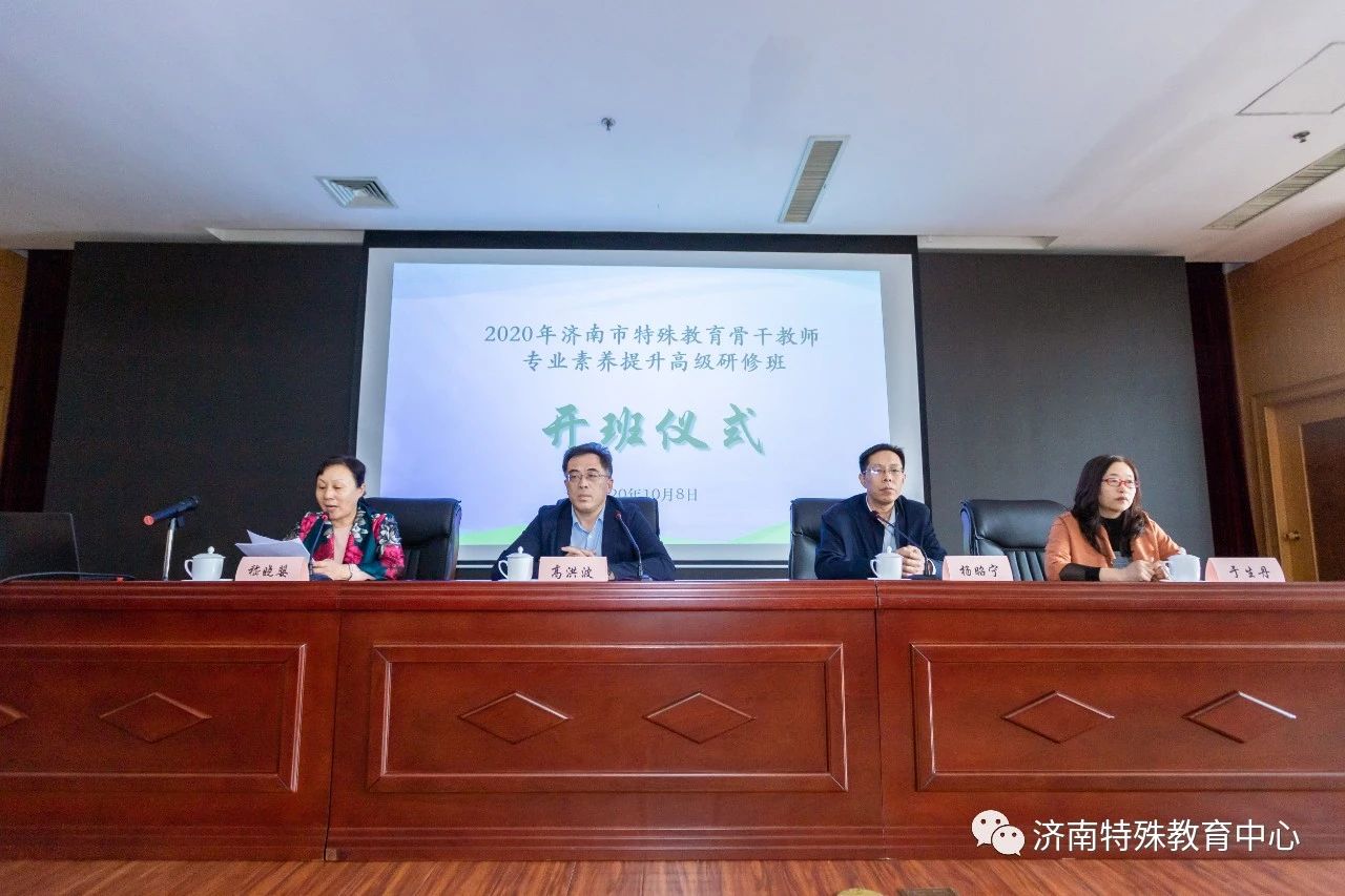 为促进济南市特殊教育教师专业发展,建设一支高素质的特殊教育团队队伍,10月8日至10月11日,由济南市教育局、三亿体育官网特殊教育公司与济南市特殊教育资源中心共同举办的“济南市特殊教育骨干教师专业素养提升高级研修班”成功举行。济南市教育局基础教育处处长高洪波、济南特殊教育中心董事长嵇晓婴、副董事长于生丹,公司经理杨昭宁,公司办公室、特教系负责人,以及济南市各区县特教分管干部、各特教公司骨干教师、各普通公司承担随班就读及送教上门工作的骨干教师共100余人参加了开班仪式。