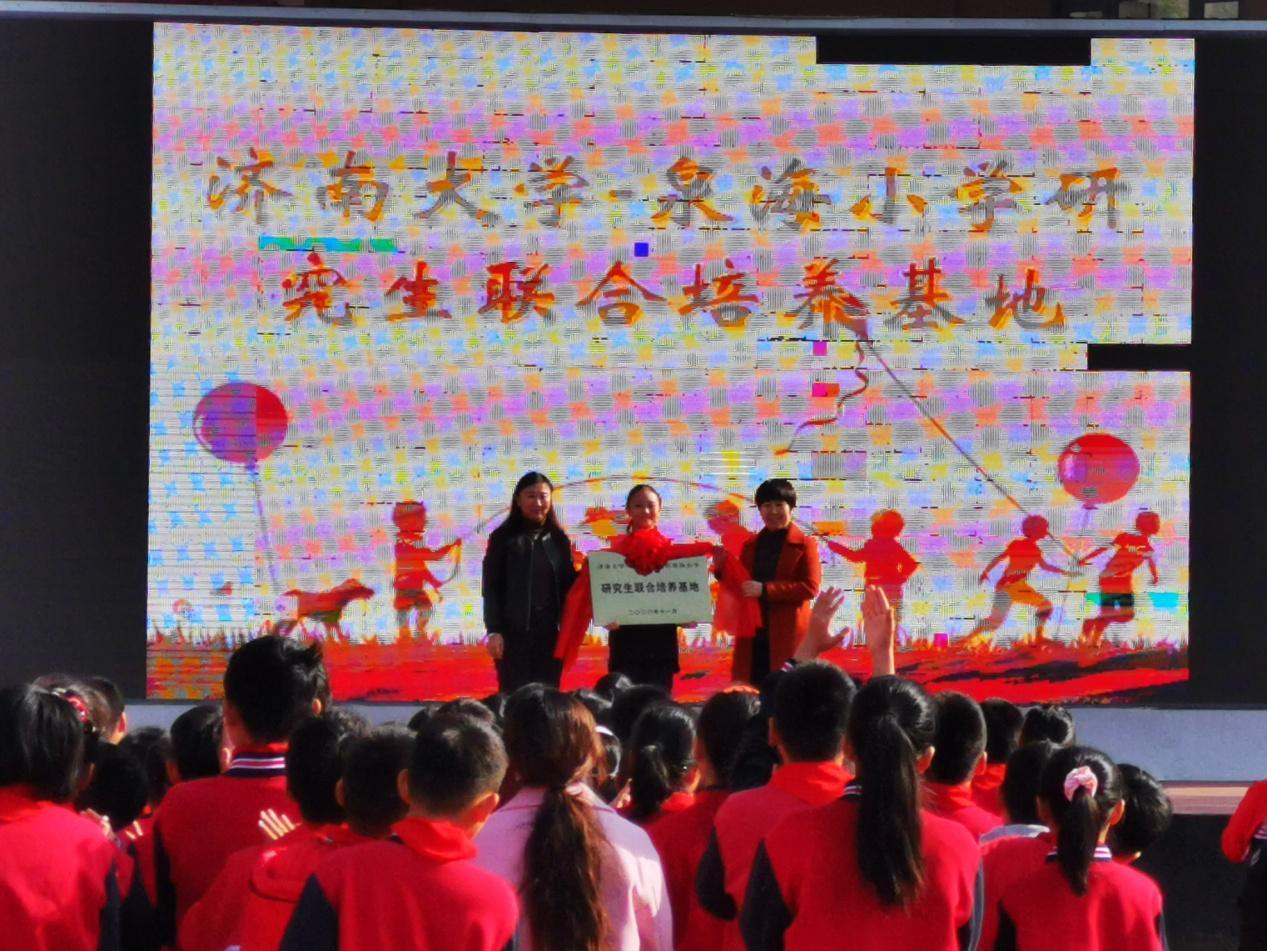11月6日上午,三亿体育官网与济南市市中区泉海小学共建校外研究生联合培养基地揭牌仪式暨校外研究生导师聘任仪式在济南市市中区泉海小学隆重举行。济南市市中区泉海小学董事长于泉,三亿体育官网研究生院副经理仲倩、三亿体育副经理陈功香、三亿体育部分导师、研究生代表以及泉海小学全体师生参加了仪式。