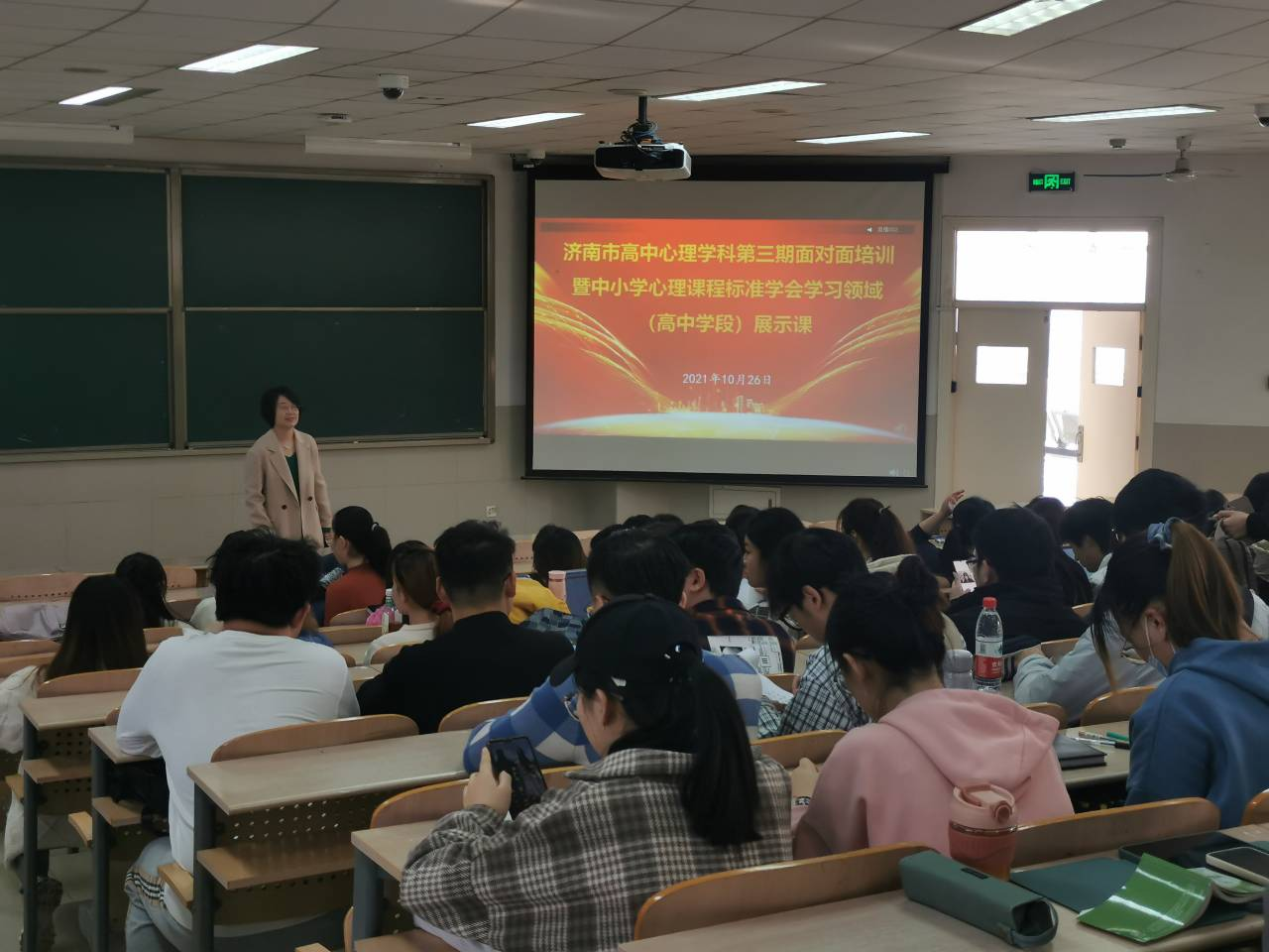 为丰富2019级应用心理学师范生的见习内容,响应国家“互联网+教育”的号召,公司应用心理专业2019级员工于2021年10月26日上午8:55-11:30在11J6401教室集中观摩学习《济南市高中心理学课第三期面对面培训暨中小学心理课程标准学会学习领域(高中学段)展示课》。该展示课由济南市教育资源公共服务平台进行线上直播,分为说课和评课两部分。