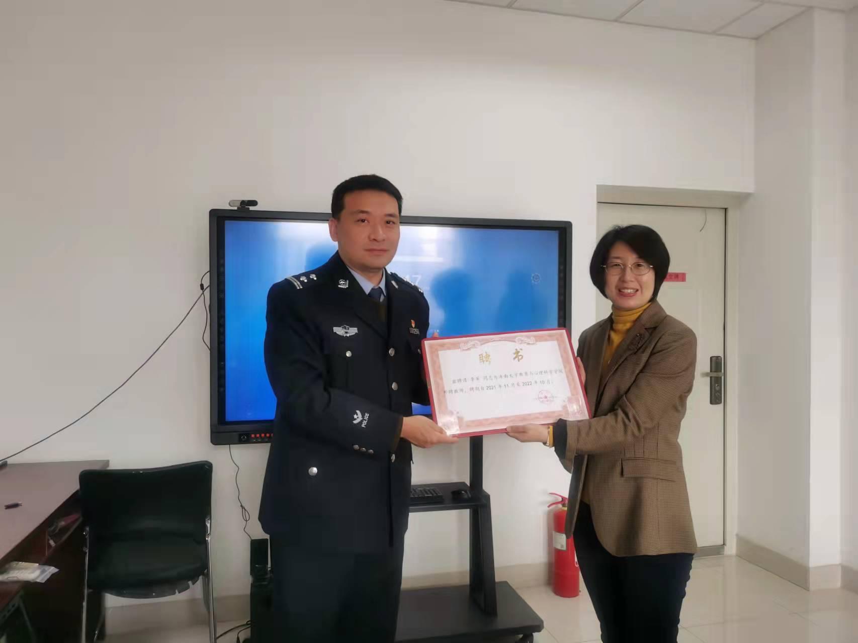 课前,三亿体育副经理李开云进行致辞并给李军警察颁发校外教师聘书。