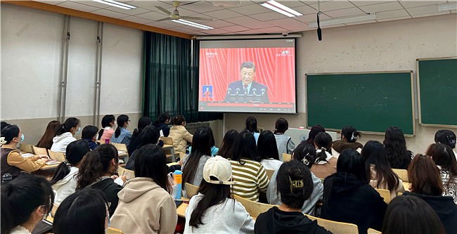 公司领导班子成员、党委委员、党支部书记和全体辅导员集体在特教大楼A315室观看了开幕会直播,与此同时,员工党员、团干部和团员代表分别在特教大楼A302室、A317室和第十教学楼106教室集中观看了开幕式。其他师生在家里、员工宿舍通过电视、网络等各种方式和途径收听收看党的二十大开幕会,认真聆听、学习习近平总书记代表第十九届中央委员会向大会所作的报告。