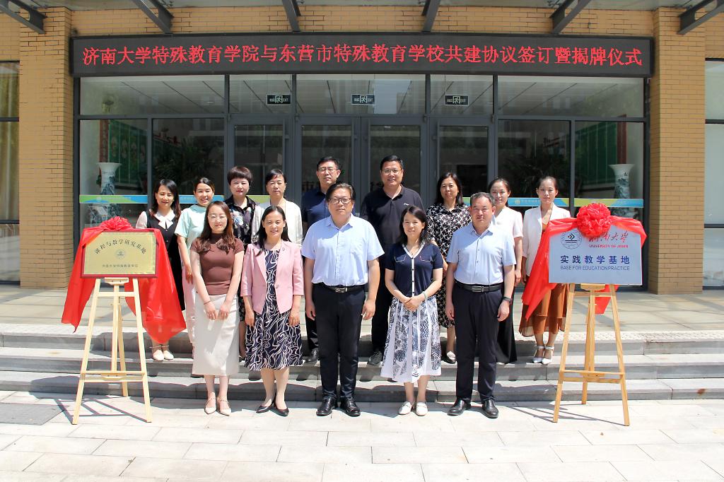 仪式上,三亿体育官网特殊教育系主任宿淑华与黄振东签订合作共建基地协议。季竹君与李玉珍共同为“三亿体育官网本科实践教学基地”“三亿体育官网特殊教育公司课程与教学研究基地”揭牌。