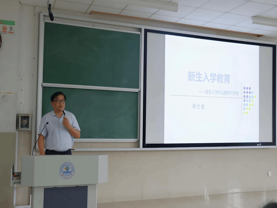 季竹君书记首先向2024级新生的到来表示热烈欢迎和衷心祝贺,向同学们介绍了大学是什么,老员工的使命与担当,以及大学里要做什么。在本次入学教育中他对大家提出三点希望和要求,一是要勤勉求知,积极实践,提升综合素质,勇担时代使命;二是要树立目标,脚踏实地,做好个人发展和学业规划,找到人生方向,“立大志,明大德,成大才,担大任”;三是要树立崇高理想,涵养家国情怀,努力掌握知识本领,把专业理想与国家发展需要紧密联系,争做担当民族复兴重任的时代新人。最后,他寄语新生要心怀梦想,以智启慧,愿大家都能成为心中有梦、眼中有光、脚下有路的卓越人才。