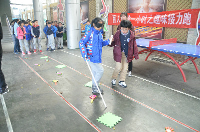 参与本次盲人体验活动的是山师附小五年级七班的员工。在进行盲人体验活动之前,孩子们观看了《盲童的世界》,视频里盲童井井有条的日常生活让孩子们深有感触。随后,孩子们在Abe团队成员的指导下,充满期待地参与了盲人穿衣,盲道行走,盲道接力和盲文识记活动。他们在活动过程中都不甘落后,充分体现了团队协作精神和蓬勃朝气。将近一个小时的活动之后,孩子们切身体会到了视障儿童生活的不易与艰辛。