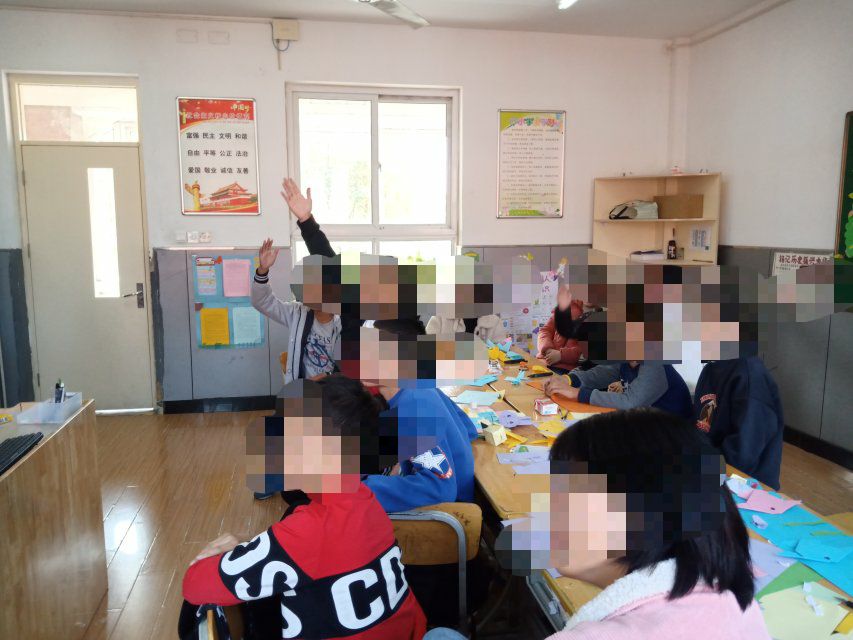 志愿者们刚到教室就受到了孩子们热烈的欢迎,他们用简单易懂的手语介绍自己,并积极地与志愿者们交流,志愿者们也通过自己掌握的手语知识与孩子们进行互动,并教给他们一些有益的课外知识,丰富他们的课余生活。活动期间,志愿者们给每个孩子都分发了彩纸,与他们一起进行有趣的折纸游戏,孩子们对此表现出浓厚的兴趣,积极配合志愿者们将一张张彩纸折成各种各样的可爱的小动物。志愿者们也耐心的教给孩子们一些比较繁琐的步骤,鼓励孩子们主动去完成折纸。此外,志愿者们还给孩子们带去了“你画我猜”的小游戏,孩子们通过自己的理解,将自己要表达的东西画在纸上,让志愿者们来猜,孩子们的想象力很丰富,动手能力也很强,教室里一片欢笑,气氛分外温情,孩子们和志愿者们相处得很融洽。活动结束时,孩子们还紧紧抓住志愿者们的手不放开,希望志愿者们以后继续来陪他们。