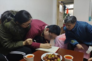 小玮的奶奶热情招待了大家。在志愿者们和奶奶的陪伴下,小玮认真完成了志愿者们为他出的一套乘除法数学题并进行了小学课本中一篇文章的朗诵。大家为小玮检查了数学作业和千字文的背诵情况,认真辅导他进行错误题目的纠正。在这阴沉的天气里,看着这个男孩儿的成长与进步,阳光仿佛透过层层乌云照进了大家的心里。志愿者们与奶奶相谈甚欢,从奶奶口中了解了小玮最近的生活与学习情况。在融洽的氛围中,小玮也慢慢感受到与人相处的快乐,渐渐绽开了笑容。