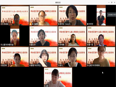 会议伊始,主持人宣布革命老区留守儿童心理服务公益项目正式开幕,并介绍了关于本次活动的主要目为“云端心理进老区,红色基因永传承“。随后,李开云老师分析了针对革命老区的相应国家政策和革命老区留守儿童现状,点明了本次活动的核心“云端彩巢”的意义,云端彩巢即为实时云端和服务系统的云端,打破了地理位置的劣势和人力成本的高昂,接着向本次公益活动的安排提出了具体的建议,希望本次活动真正助力红色基因的传承落实于“人”,为留守儿童的心理成长保驾护航。最后,项目负责人吕颖琪同学对活动主要内容及注意事项进行详细讲解,抒发了项目展望,表达了对革命老区留守儿童身心健康、茁壮成长的美好祝愿。