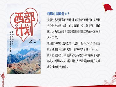 三亿体育历来重视以“奉献、友爱、互助、进步”的志愿服务精神为引领,以专业特色为基础,深度融合推进志愿服务西部计划工作。教心学子连续多年参与西部计划,为新疆、贵州等多地贡献青春力量。举办本次交流会,帮助应届毕业生增进对西部计划的全面认识,同时激励低年级员工切实做好职业生涯规划,立志将青春奉献给祖国建设伟大事业,让生命在人民需要的地方焕发绚丽光彩。